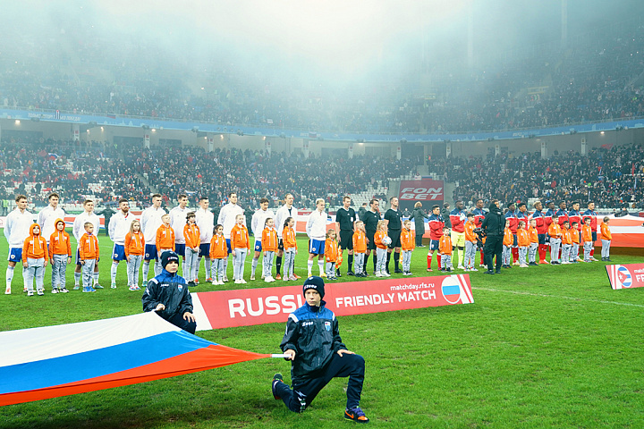 Пока ребята в раздевалке делились впечатлениями и готовились вернуться к родителям, на поле происходило что-то невероятное. Перед полным стадионом — игру посетили более 40 700 человек! — наши игроки показали зрелищный, результативный и яркий футбол. На 22 минуте матча Иван Обляков открыл счет, и дальше все пошло по накатанной. К концу первого тайма табло уже показывало 3:0 в нашу пользу, а после перерыва буквально одним за другим в ворота кубинцев залетели еще 5 мячей.