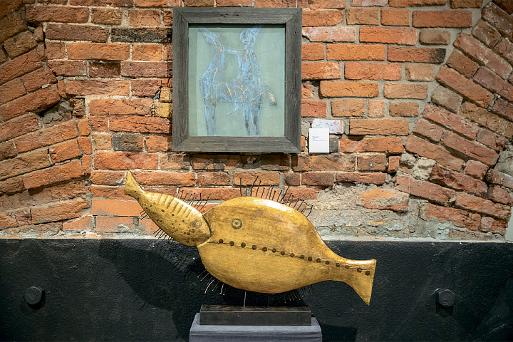 Алексей Чернышов – мастер метаморфоз и коллекционер мифологических, библейских и общечеловеческих образов, которые выражает языком красок и утилитарных объектов. Под взмахами его кисти и мастерка, ударами молотка и стамески рисованные сюжеты обретают символичное значение, а предметы обстановки возводятся в ранг искусства. Выставка «Далекое и близкое», помещенная в контекст индустриальных пространств «Северской домны», заставила рукотворные творения открыться по-новому. Музейный комплекс стал фоном для почти первобытных образов: открытая кирпичная кладка XIX века создала камерную атмосферу, заставляющую зрителей совершить путешествие в измерение, сотканное из аллюзии.