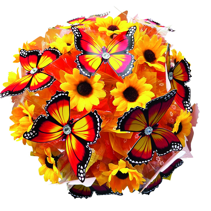 Еще одна задумка возникла у нее накануне Дня знаний, в процессе подготовки сына к школе. Всего за полтора часа обычные канцелярские принадлежности в ее руках превратились в роскошный букет, который ребенок преподнес своей учительнице. Она выразила мамочке особую благодарность за самый полезный и творческий подарок.