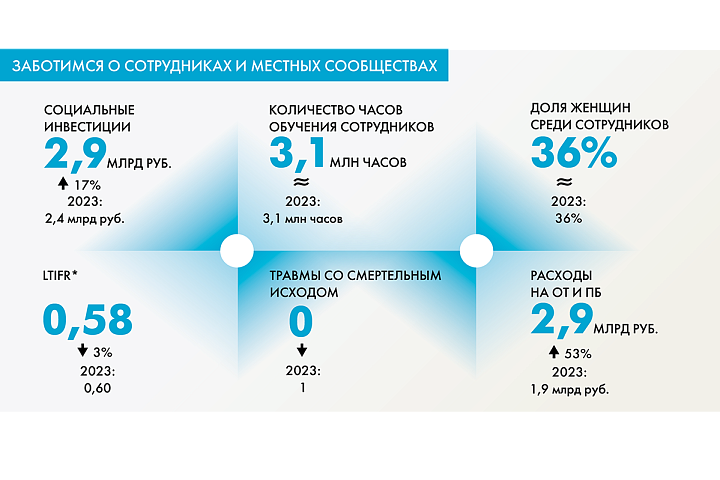 Отчет – это инструмент открытого диалога с заинтересованными сторонами: сотрудниками, клиентами, партнерами, представителями местных сообществ и органов власти. Он помогает наглядно показать, над чем мы работаем, систематизировать информацию и зафиксировать прогресс по ключевым направлениям. В нем отражены все приоритеты, закрепленные в Стратегии в области устойчивого развития до 2027 года. Это охрана окружающей среды, противодействие изменению климата, охрана труда и промышленная безопасность, развитие человеческого капитала, деловая этика и поддержка регионов присутствия.