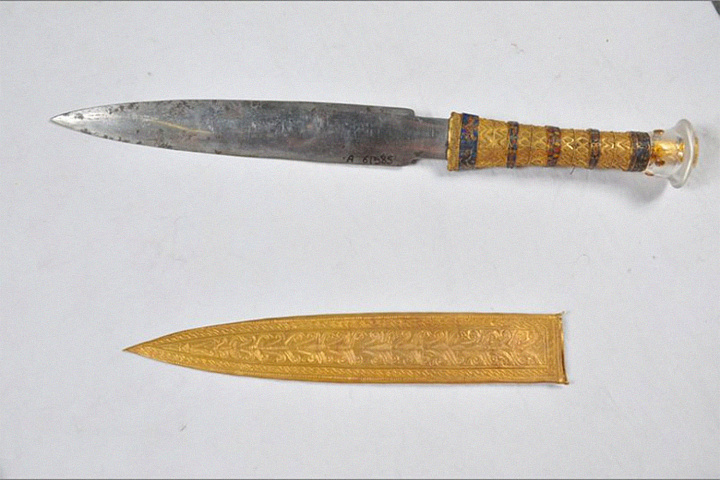 В гробнице Картера обнаружили сотни предметов из золота, алебастра и дерева — свидетельства мастерства древнеегипетских ремесленников. Но особое внимание привлек один предмет — железный кинжал с золотой рукоятью, инкрустированной малахитом, лазуритом, горным хрусталем и сердоликом. Его лезвие выглядело почти нетронутым временем, хотя любое железо эпохи бронзы давно должно было проржаветь.