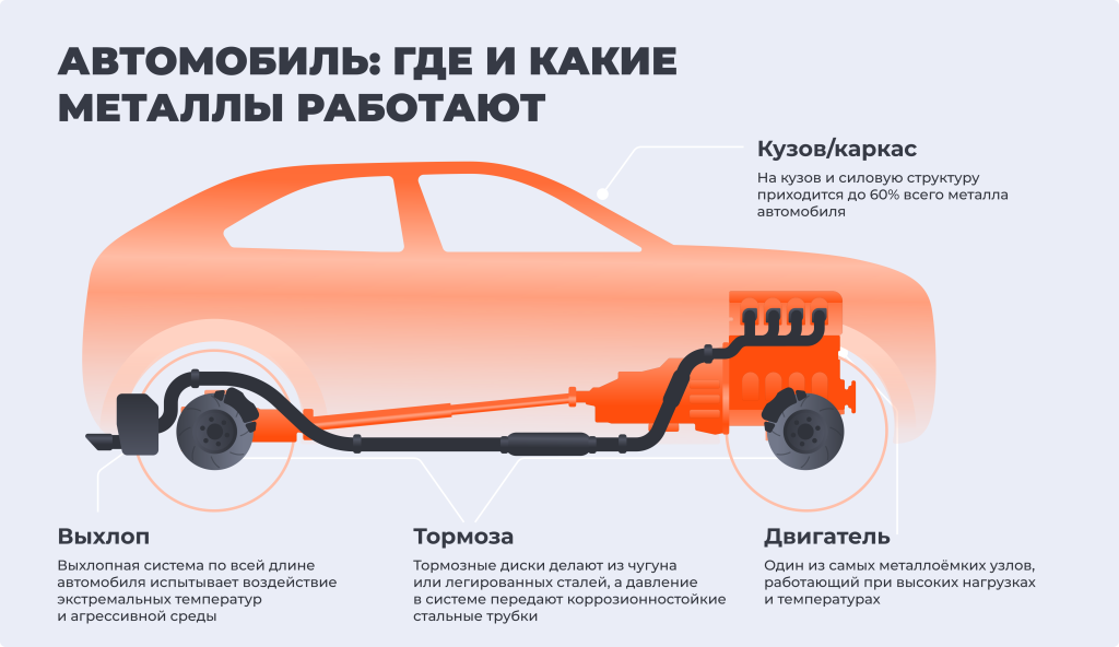 Можно сказать, что металл работает каждую секунду движения: от первого оборота двигателя до полной остановки.