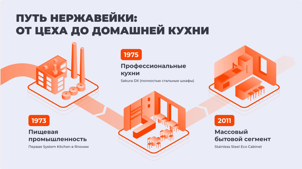 Уже в 1975 году компания представила кухню Sakura DX с полностью стальными шкафами. Один из таких гарнитуров, простоявший в обычной японской семье более 30 лет, позже разобрали и изучили инженеры. Результат оказался показательным: отсутствие ржавчины, следов плесени и деградации материала. Даже внутренние поверхности, которые обычно первыми страдают от влаги и загрязнений, сохранили первоначальное состояние.